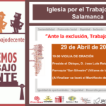 Ante la exclusión, trabajo decente. Este 29 de abril nos reunimos en la parroquia de San Silvestre (Villares de la Reina) para orar, reflexionar y comprometernos con un trabajo digno para todas las personas. Alzamos la voz frente a la precariedad y la siniestralidad laboral.