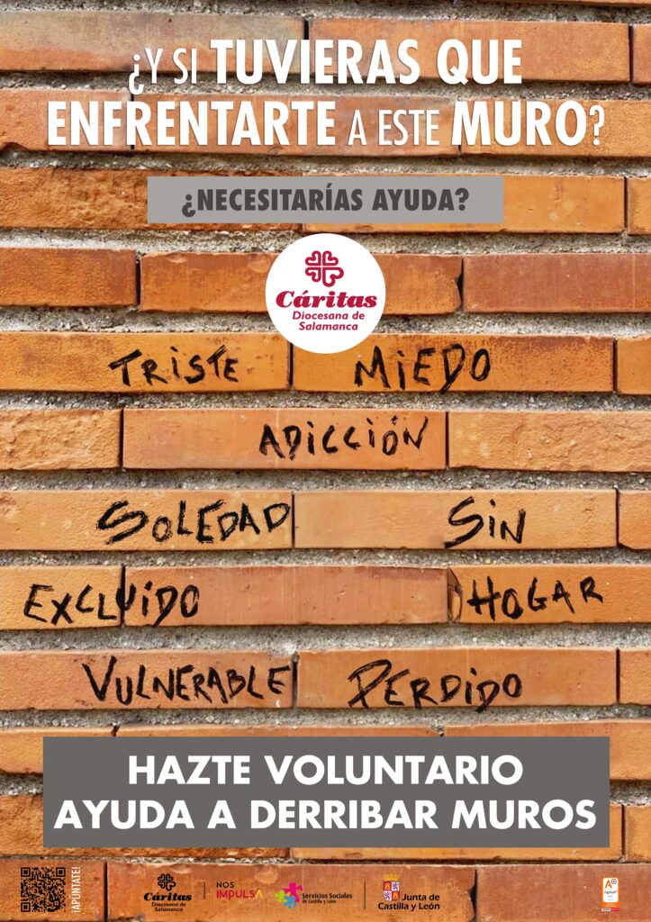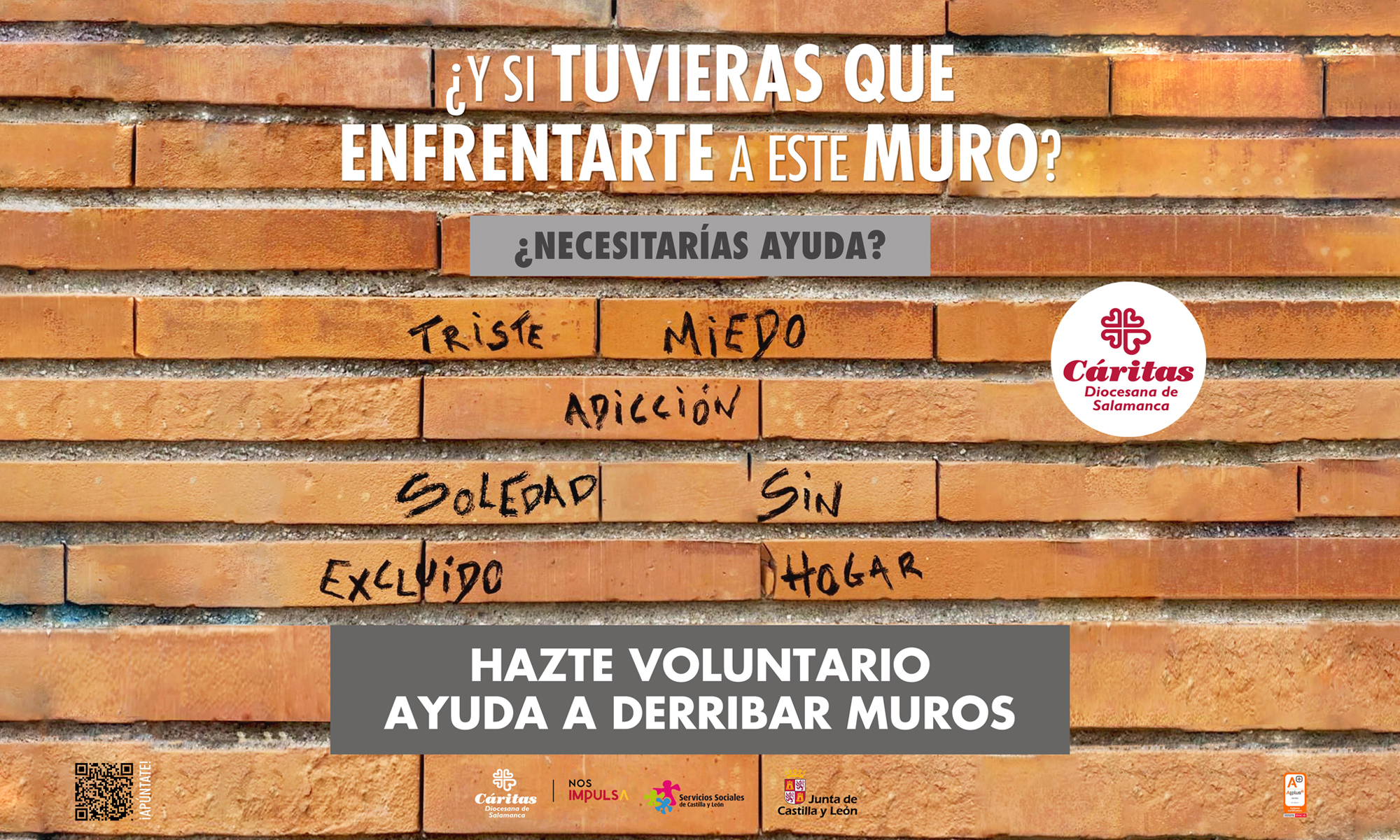 “Ayuda a derribar Muros” es el lema de la campaña 2025 de promoción del voluntariado en Cáritas Salamanca, fruto de la colaboración con los alumnos de Estrategia Creativa Publicitaria de la Facultad de Comunicación de la UPSA.