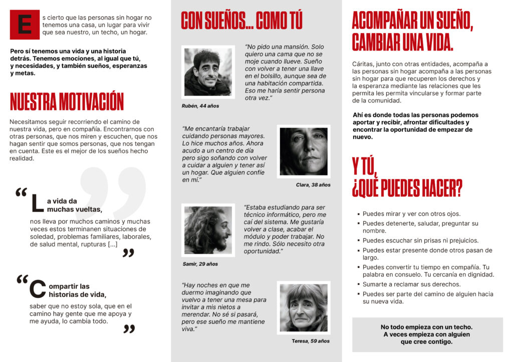 Esta campaña quiere también abrir los ojos a la sociedad sobre las múltiples causas que llevan a una persona a perder su hogar, y cómo la respuesta debe ser integral: acceso a vivienda digna, empleo estable, apoyo sanitario y comunitario, y una verdadera cultura de acogida.