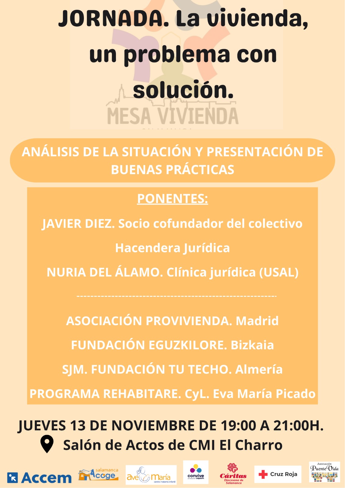 Desde la Mesa de Vivienda de Salamanca, os invitamos a la jornada «La vivienda, un problema con solución», sobre buenas prácticas en materia de vivienda   En el Salón de Actos del Centro Municipal Integrado El Charro, a las 19:00h.  ¡Os esperamos!