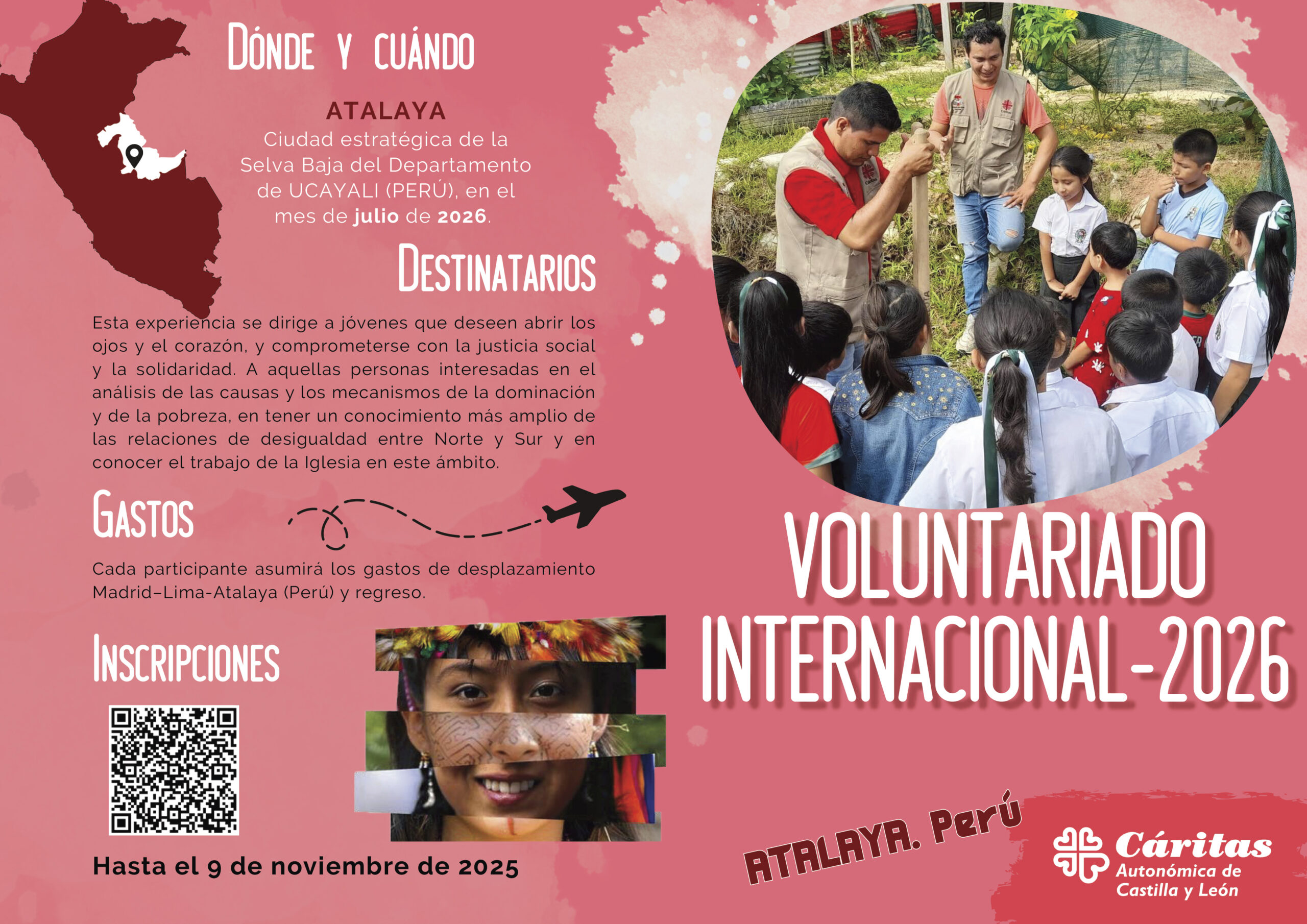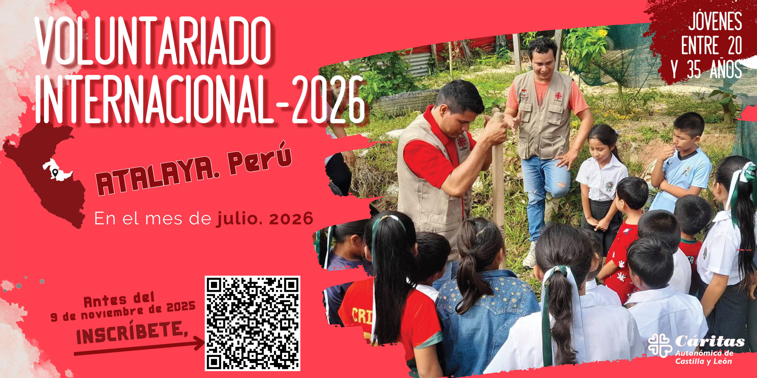 Cáritas Castilla y León retoma en 2026 su programa de voluntariado internacional con destino Atalaya (Perú), invitando a jóvenes de 20 a 35 años a colaborar en proyectos sociales, educativos, medioambientales y comunitarios junto a las poblaciones más vulnerables.
