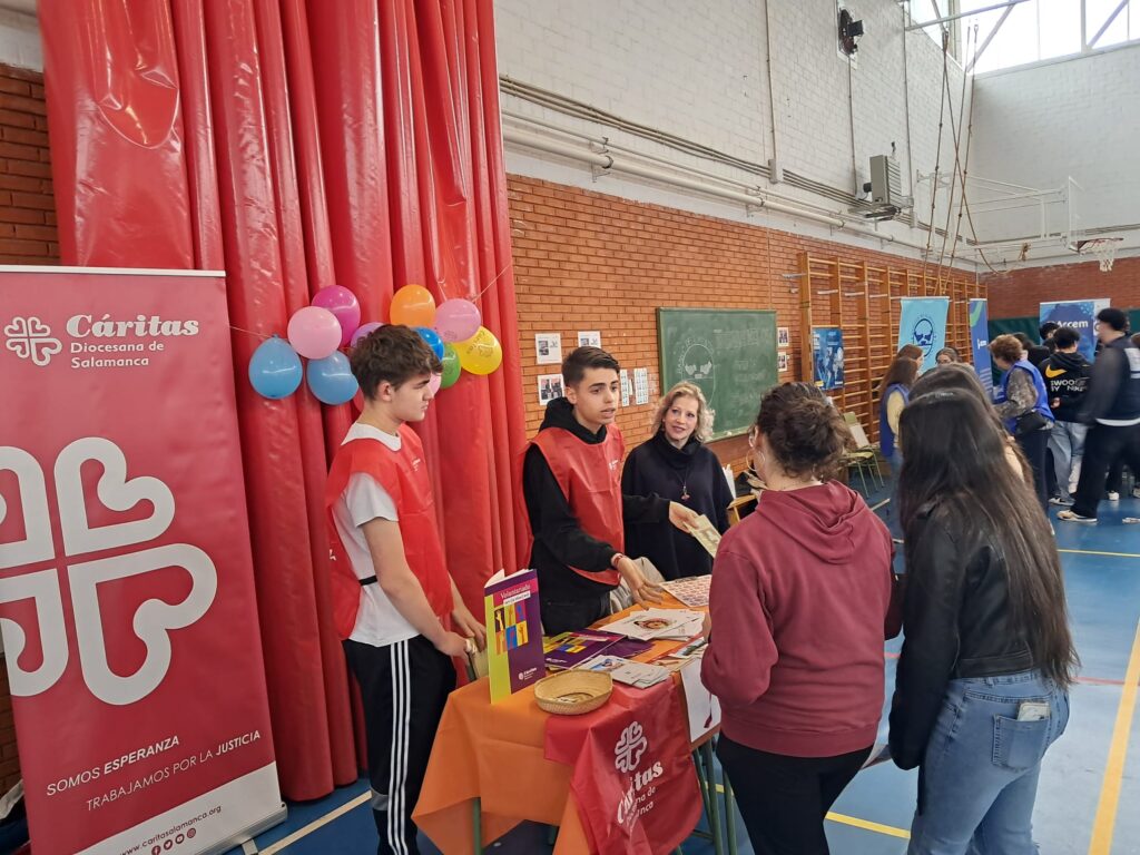 Cáritas Diocesana de Salamanca participó el pasado 18 de marzo en la segunda edición del Día de la Solidaridad y el Voluntariado, organizado por el Instituto de Enseñanza Secundaria ‘Lucía de Medrano’. Esta jornada se enmarca dentro del Proyecto LuciAcoge, una iniciativa que busca consolidar la escuela pública como un espacio vivo de solidaridad, donde aprender a cuidar y a actuar juntos.