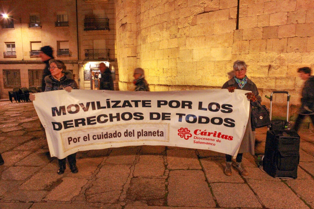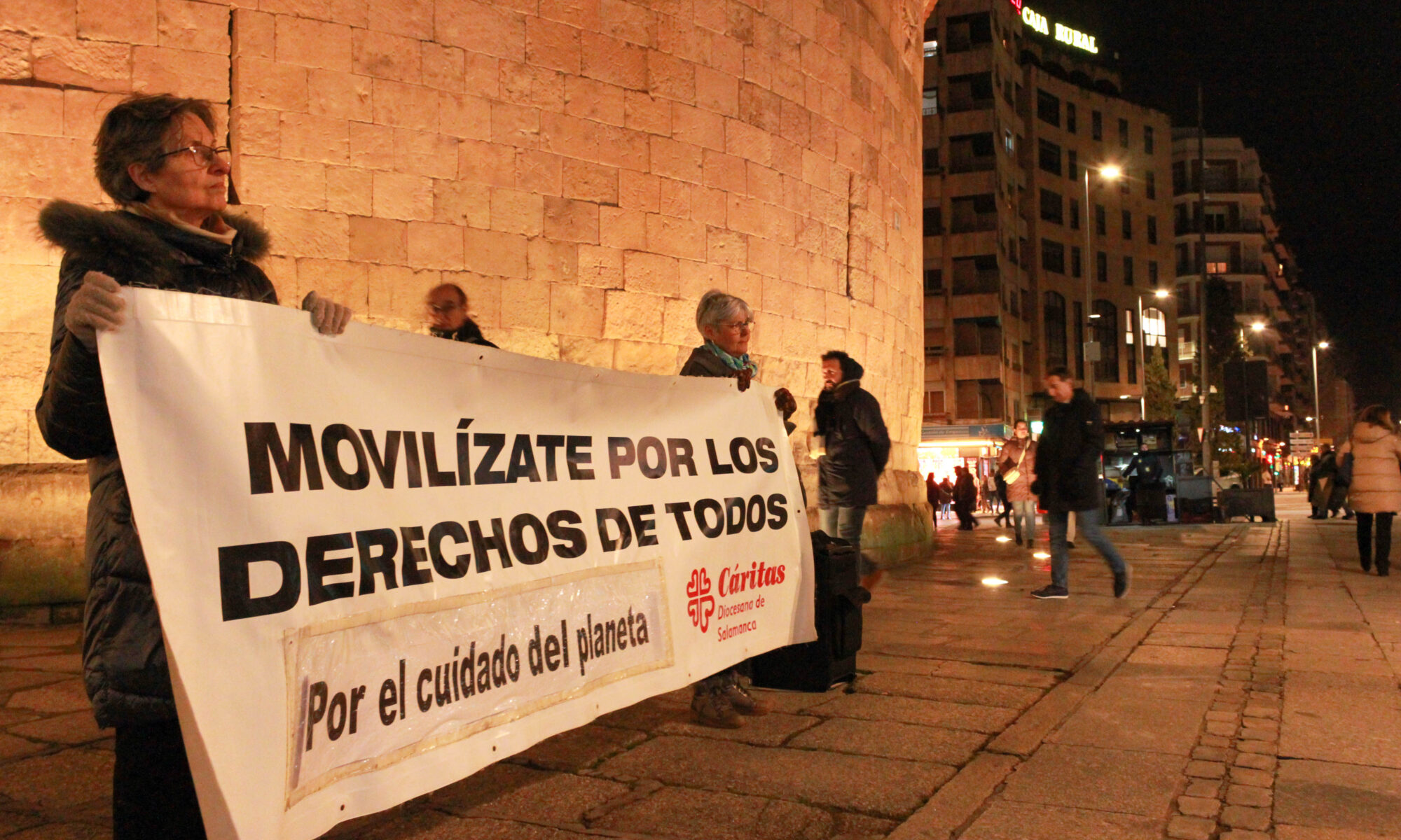A pesar del frío, Cáritas Salamanca celebró ayer, jueves 29 de enero, el primer Círculo de Silencio del año en la Puerta Zamora, junto a la iglesia de San Marcos. Un espacio abierto a toda la ciudadanía para la reflexión y la denuncia pacífica de distintas realidades sociales.