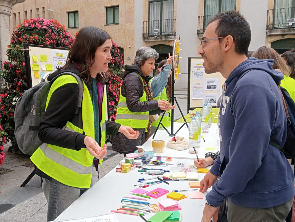 Durante la mañana, profesionales, personas voluntarias y ciudadanía participaron en una dinámica participativa abierta, que invitaba a detenerse un momento y reflexionar sobre el uso de nuestro tiempo, nuestras prioridades y la importancia de atender el bienestar emocional propio y colectivo. A través de propuestas simbólicas y gestos sencillos, se promovió el diálogo y la empatía, con el objetivo de romper estigmas y visibilizar las dificultades invisibles que muchas personas enfrentan cada día: el aislamiento, la exclusión o la falta de oportunidades.
