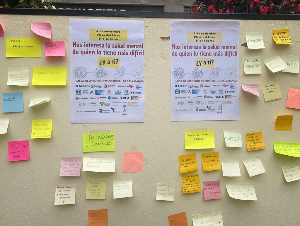 Cáritas Salamanca, como una de las 22 entidades que forman parte de esta mesa, participó activamente en la jornada, compartiendo junto a otras organizaciones el mensaje de que cuidar la salud mental es cuidar la vida.