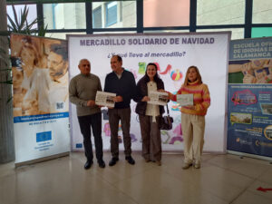 Cáritas Diocesana de Salamanca ha recibido esta mañana 2.375 euros procedentes del Mercadillo Solidario de Navidad organizado por la EOI. Una iniciativa que ha recaudado un total de 4.750 euros gracias a la solidaridad de la ciudadanía salmantina. La cantidad se ha repartido a partes iguales entre Cáritas Salamanca y la asociación Pyfano, apoyando así la labor social que ambas entidades desarrollan en la provincia.