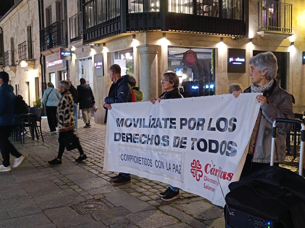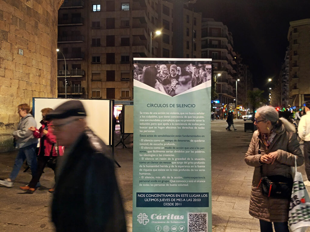 Este jueves, Cáritas Salamanca convocó a la ciudadanía en la Puerta Zamora, junto a la Iglesia de San Marcos, para participar en un nuevo Círculo de Silencio por el derecho a la paz. Este mes, la iniciativa ha formado parte de la Escuela de Formación Social 2026 de Cáritas Salamanca, ofreciendo un espacio de reflexión y aprendizaje sobre la importancia de la paz y la justicia social.