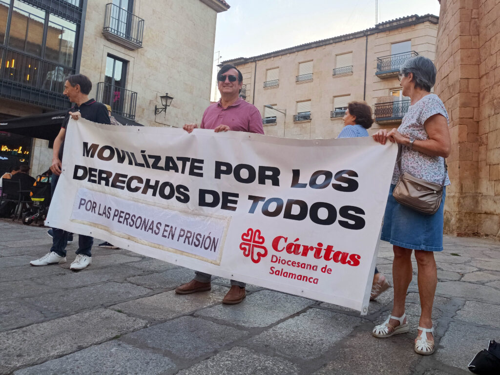 Este jueves 18 de septiembre, Cáritas Salamanca ha celebrado su Círculo de Silencio de septiembre en Puerta Zamora, junto a la Iglesia de San Marcos. Un acto simbólico que ha servido para visibilizar la situación de las personas privadas de libertad y reivindicar su derecho a la dignidad y a la reinserción social.