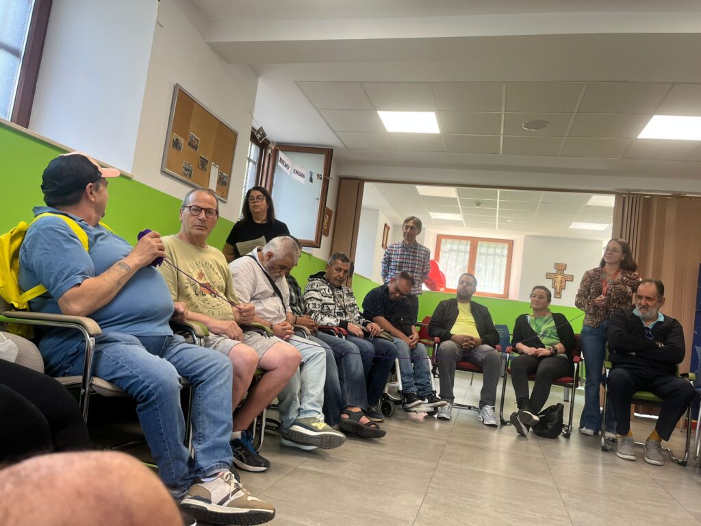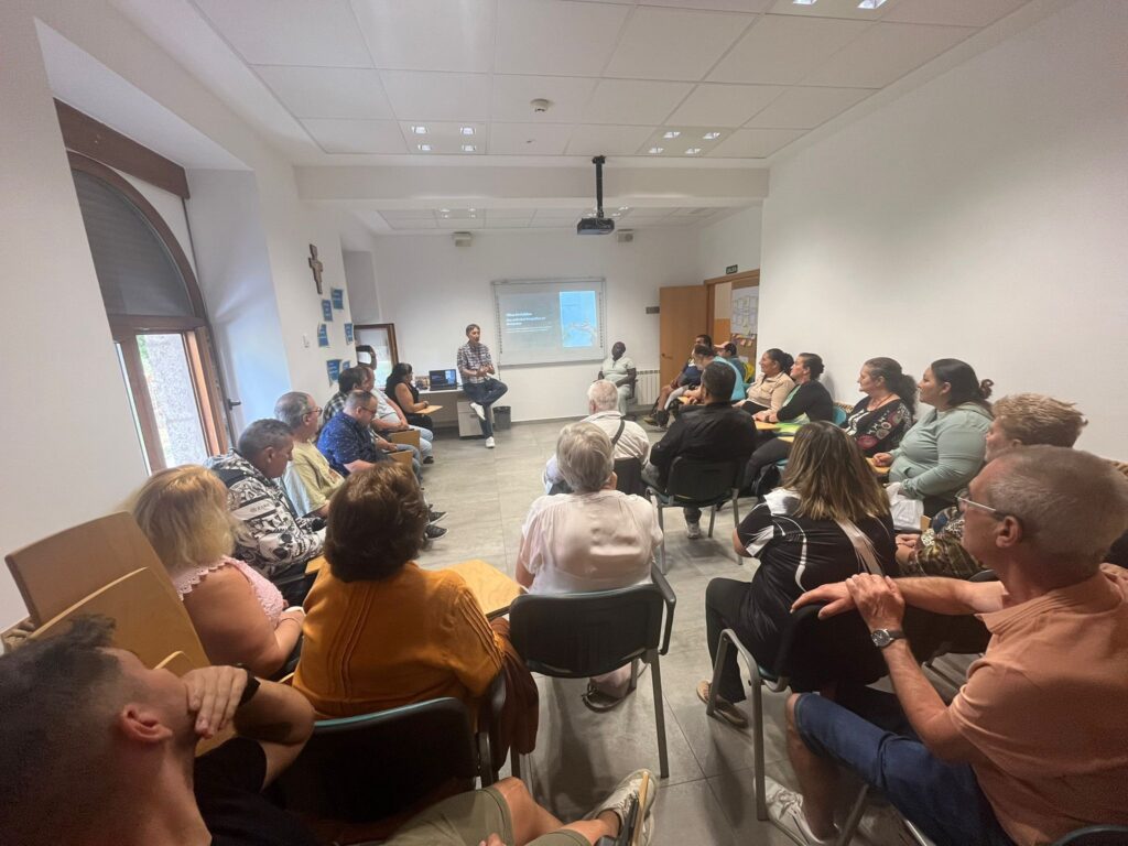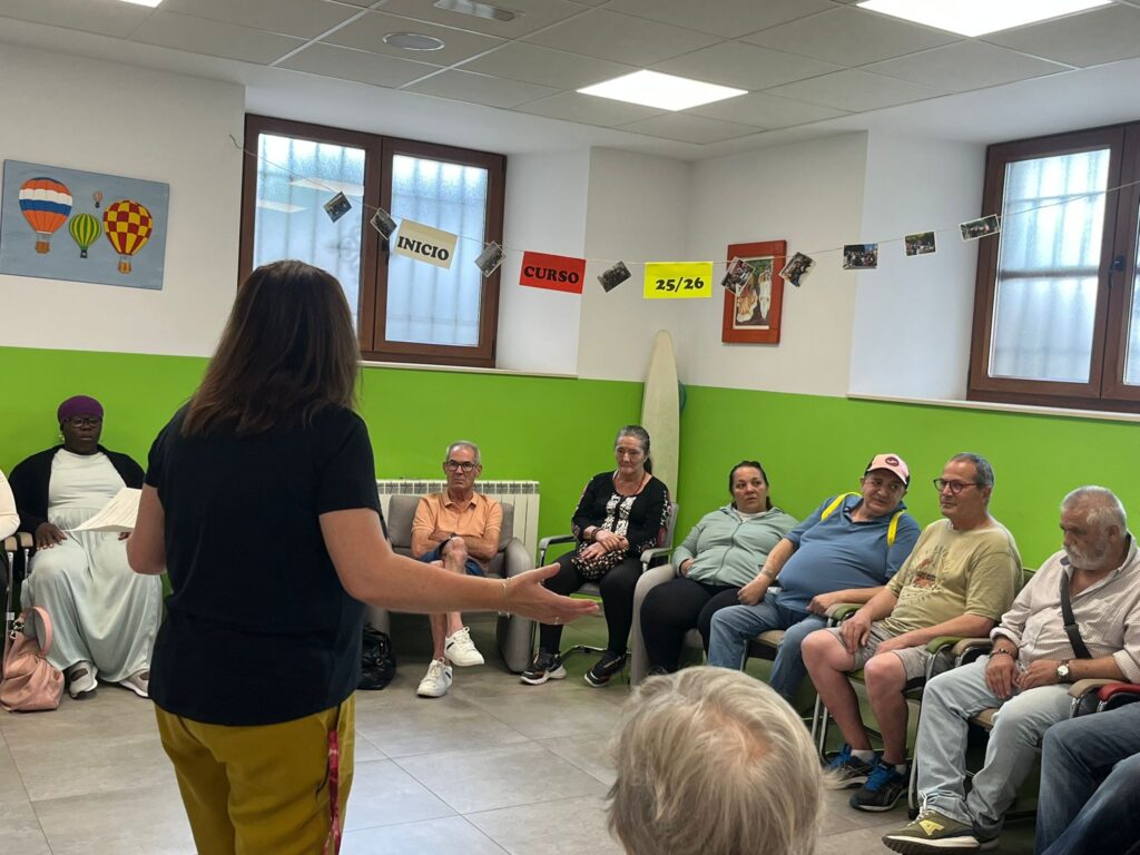 La mañana comenzó con una bienvenida significativa, preparada con especial cariño: música suave, un cartel de bienvenida y una recepción decorada con fotografías del curso anterior. Tras unas palabras de apertura de Gema, que agradeció el reencuentro y recordó lo vivido, el grupo participó en un círculo compartido. Con una madeja de hilo que iba pasando de mano en mano, cada persona respondió a preguntas como “¿Qué me ha sostenido este verano?” o “¿Qué quiero tejer este curso en mi vida?”. El hilo fue tejiendo literalmente una red que simbolizó la unión y el cuidado mutuo que caracteriza al proyecto.
