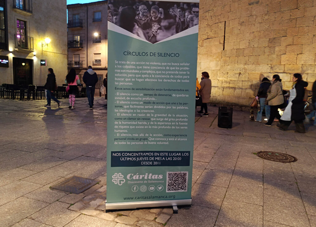 Cáritas Salamanca celebró este jueves por la tarde un nuevo Círculo de Silencio; en esta ocasión, centrado en la defensa de los derechos de las trabajadoras del hogar, en el marco del Día Internacional que se conmemora cada 30 de marzo.