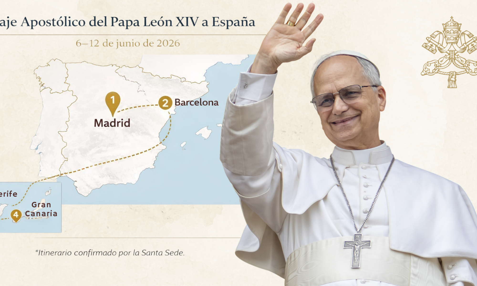 La Santa Sede ha confirmado recientemente que el Santo Padre, León XIV, realizará un viaje apostólico a España del 6 al 12 de junio de 2026. La confirmación ha sido hecha pública por la Secretaría de Estado, tras la invitación del rey Felipe VI y de la Iglesia española.