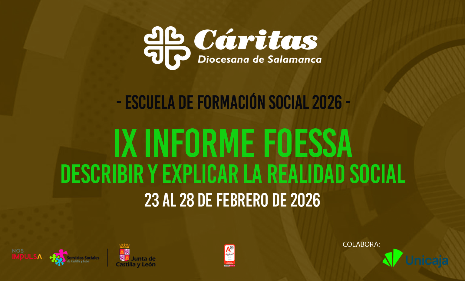 La Escuela de Formación Social 2026 de Cáritas Diocesana de Salamanca se celebrará este 2026 del 23 al 28 de febrero y se presenta como un espacio de referencia para la reflexión y el compromiso con los desafíos sociales actuales. Una sjornadas que cuentan con la colaboración del banco Unicaja, y que están dirigidas a agentes sociales, profesionales, voluntariado y ciudadanía interesada en comprender y transformar la realidad social desde una mirada crítica, solidaria y comprometida.