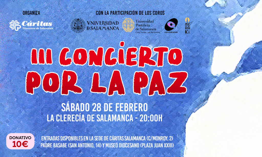 La semana de la escuela finaliza con un concierto solidario por todo o alto, en el que participarán cuatro ilustres corales salmantinas en un acto que, a través de la música, refuerza el mensaje de paz y convivencia.