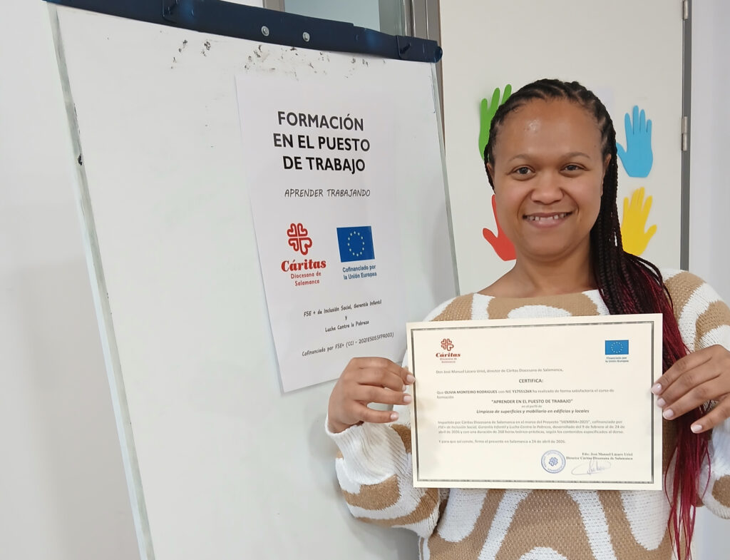 Entre el 9 de febrero y el 24 de abril, el área de inserción laboral de Cáritas ha desarrollado la primera edición de este año del programa de Formación en el Puesto de Trabajo “Aprender trabajando”; una iniciativa de 260 horas orientada a mejorar la empleabilidad de personas en situación de vulnerabilidad. La formación ha concluido con un resultado especialmente significativo: la inserción laboral mayoritaria de las personas participantes en el mismo perfil en el que se formaron.