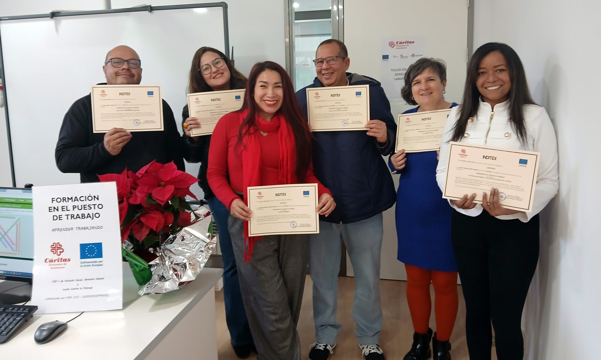 Este mes ha concluido la segunda edición de ‘Formación en el Puesto de Trabajo 2025’ del Centro de empleo y formación Padre Basabe, en la que siete personas han mejorado sus competencias a lo largo de 260 horas en áreas muy demandadas por el mercado laboral en Salamanca: mantenimiento de motores, asistente documental, gestión y control de almacén, comercio, asistente de dirección de eventos, técnico en farmacia y montaje de estructuras industriales.