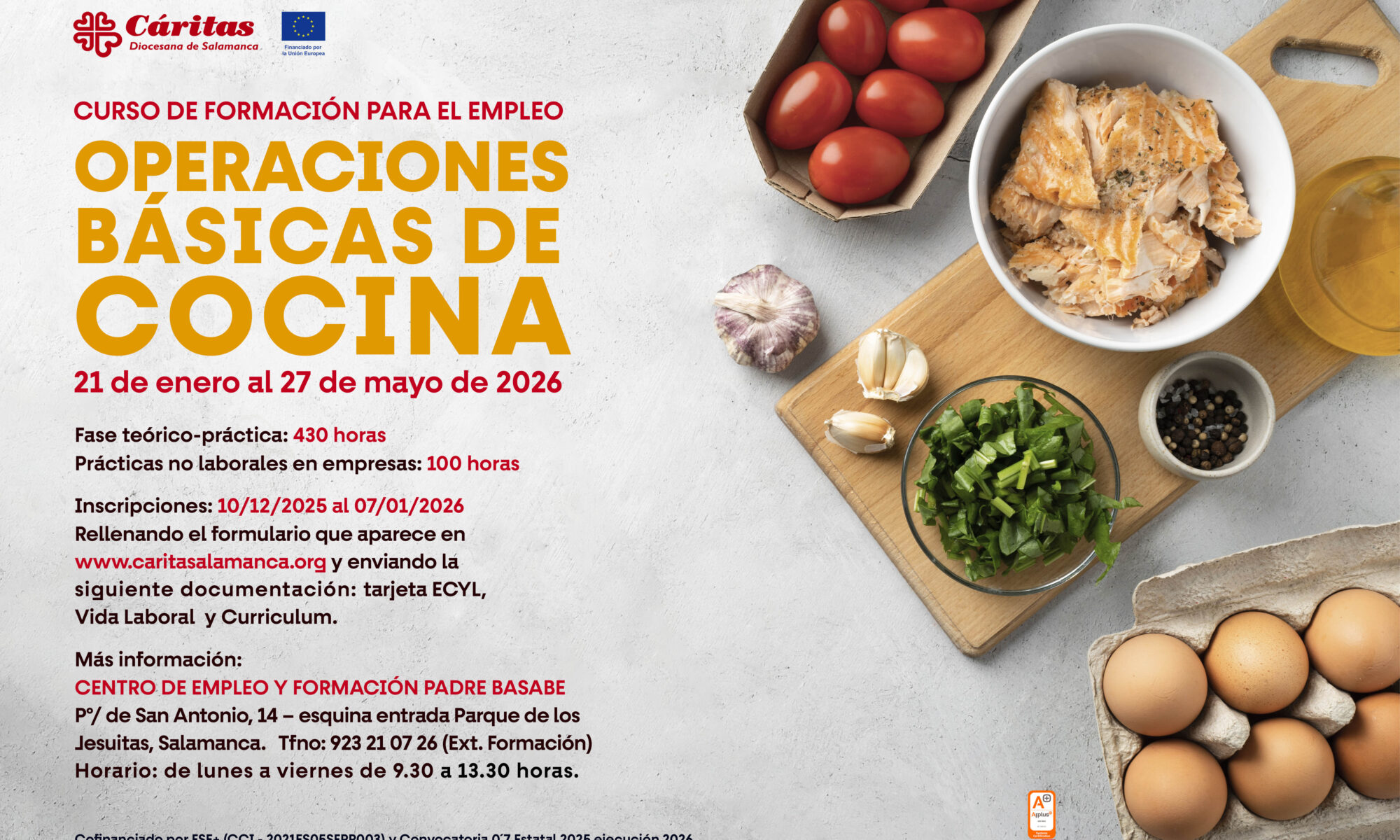 Hoy, miércoles 10 de diciembre, se abre la convocatoria de este curso de formación para el empleo organizado desde el área de inserción laboral de Cáritas Salamanca.